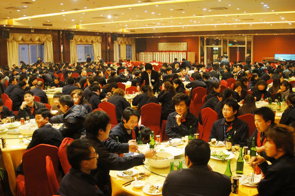 本报讯 同饮华体会官方网站_华体会huatihui(中国)水,亲似a家人。为了让公司员工在和谐温馨的氛围中迎接新年的到来,进一步增进员工之间的感情,1月17日,华体会官方网站_华体会huatihui(中国)集团在夏威夷大酒店为公司员工安排了丰盛的新年团圆宴,全体员工共聚一堂、其乐融融。员工们还在宴会间隙即兴表演了歌曲演唱、舞蹈、诗词创作及朗诵等节目,掀起了现场的阵阵高潮。