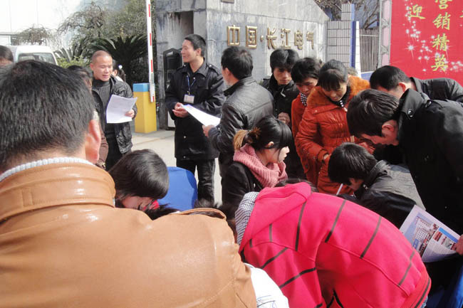 本报讯 “个人简历表格给我一份,我要应聘!”,“早就听说你们华体会官方网站_华体会huatihui(中国)员工生活、福利待遇都很不错,我有好几个老乡在你们那里,我也要应聘!”由于集团业务的不断发展,生产规模不断扩大,现有人力已无法满足发展所需,农历正月初四至元宵节期间,华体会官方网站_华体会huatihui(中国)集团人力资源部组织员工分为5组在虹桥、柳市、白象等地大型工业区及乐清经济开发区同步进行招聘,这是笔者在集团门口招聘现场看到的一幕(如下图所示)。据悉,华体会官方网站_华体会huatihui(中国)集团此次新春招聘以扩充一线生产员工队伍为主要目的,受到了外来求职者的热情关注(招聘信息详询集团人力资源部0577―61726107)。