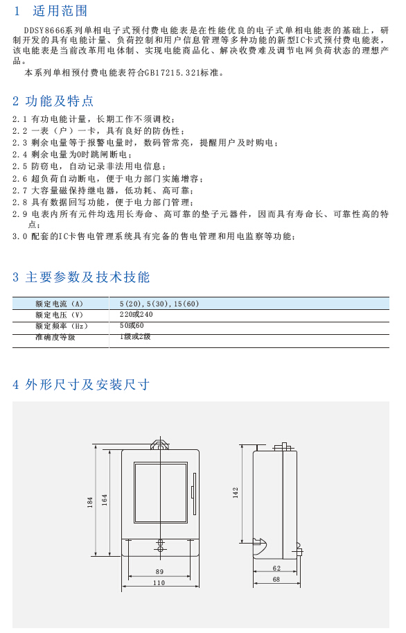 DDSY8666系列单相电子式预付费电能表