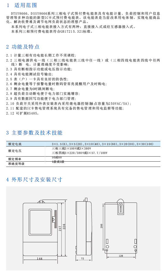 DTSY8666、DSSY8666系列三相电子式预付费电能表