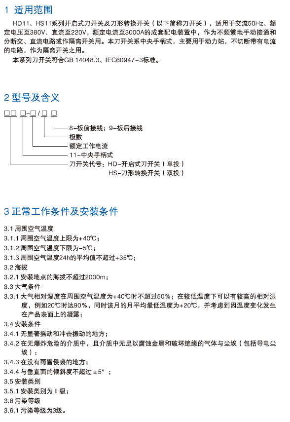 HD11、HS11系列开启式刀开关及刀型转换开关