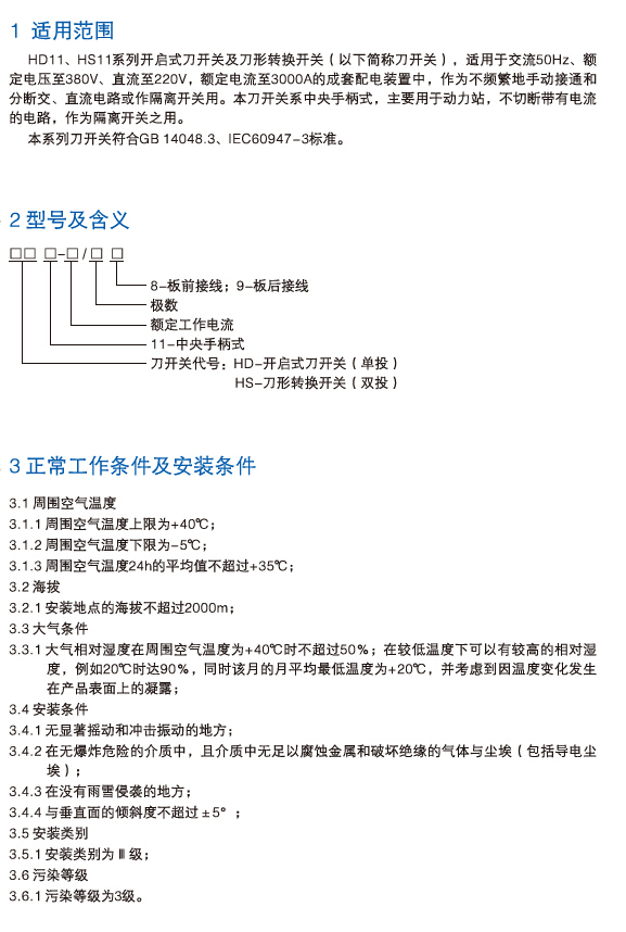 HD12、HS12系列开启式刀开关及刀型转换开关