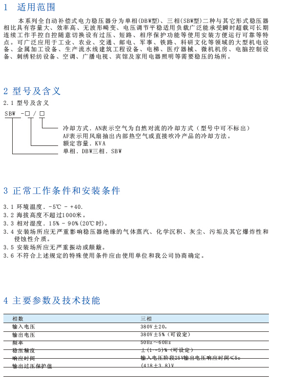 SBW系列全自动补偿式电力稳压器